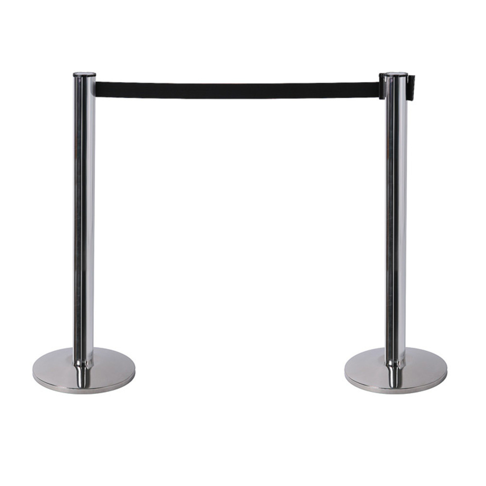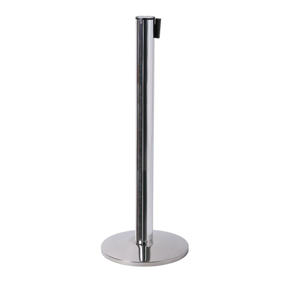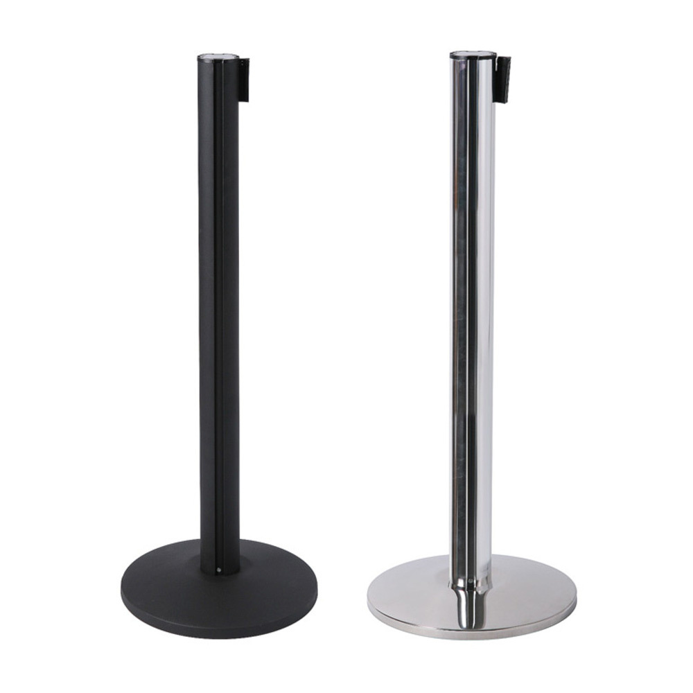 Afzetpaal zwart of chrome met trekband flexi met een zwarte trekband. Een gemakkelijke manier om alles in goede banen te begeleiden. De afzetpaal is de bestseller onder de intrekbare barrières. Een vrijstaande paal met ophangclips aan 3 zijden, met een stevige bodemplaat die zorgt voor goede stabiliteit. Een intrekbare gespannen riem van 2,7m, met ontvangst klemmen aan het uiteinde. De paal is verkrijgbaar in het zwart of chrome met een intrekbare riem in het zwart. Perfect voor wachtrijbegeleiding en ideaal voor gebruik in de detailhandel, de vrijetijdsector, transportsector, bij hotels of in winkels. Beheer de flow en richting van wachtrijen met de afzetpaal zwart met trekband.