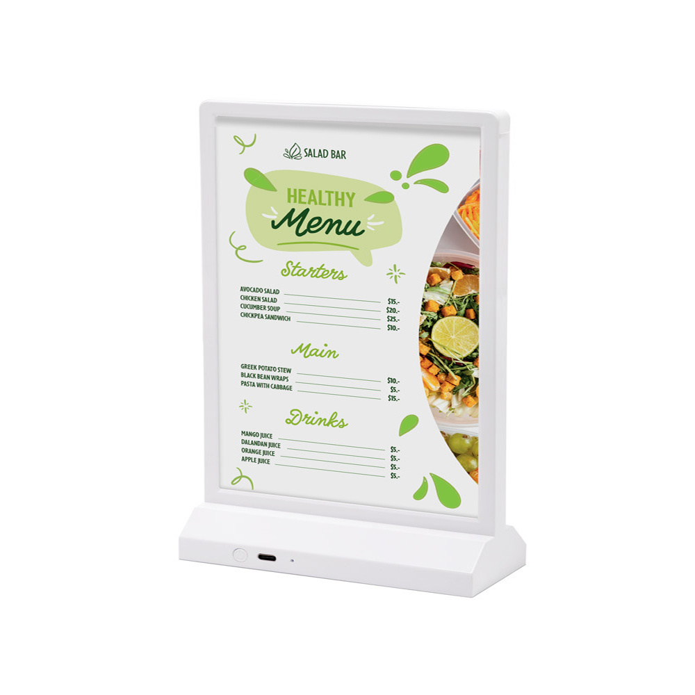 - Verlichte menukaarthouder met een accuduur van 8 tot 10 uur op een volle batterij