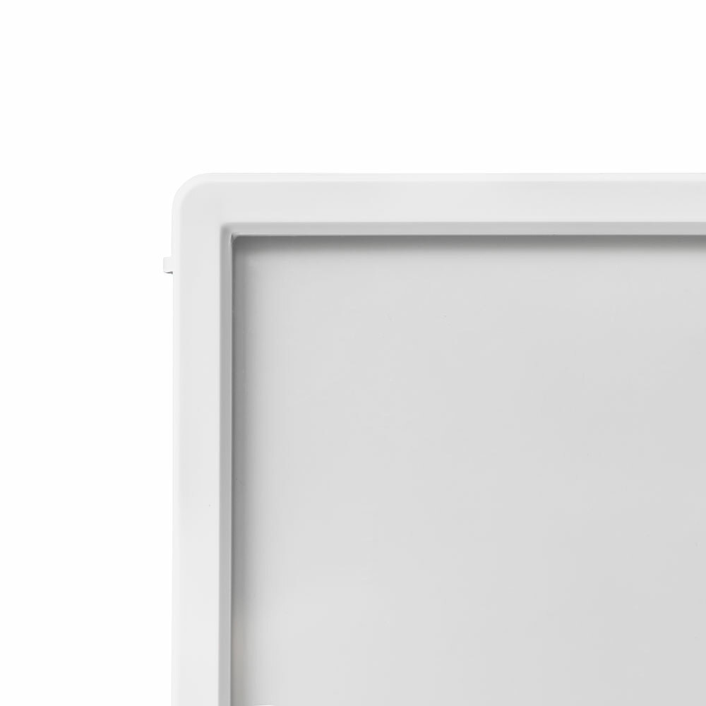 Vernieuw jouw display in een paar seconden dankzij het gebruiksvriendelijke frame. Verwijder het deksel met je vingers om het frame aan de bovenkant te openen, haal de plastic afdekking met de poster eruit, plaats een nieuwe poster en zet deze stevig vast. Sluit het frame en jouw nieuwe reclame is klaar om te stralen. De T-standaard is in 2 DIN-formaten leverbaar: DL (99x210mm) of A5 (148x210mm) BxH.